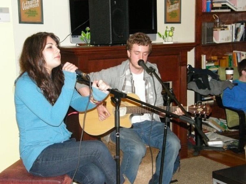 Things happened quickly: I met Sophie Pomeranz (oddly enough, I think at Borders). She and I started working on my songs together, writing music outside or, when it got cold, in my mother’s cherry-red 2000 Dodge Caravan. Soon I found enough confidence to sing with Sophie in front of other human beings at some local coffee shop open mics.